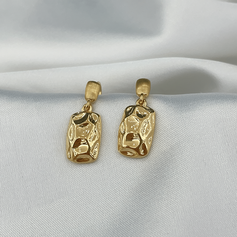 5G 锤纹方形耳钉吊