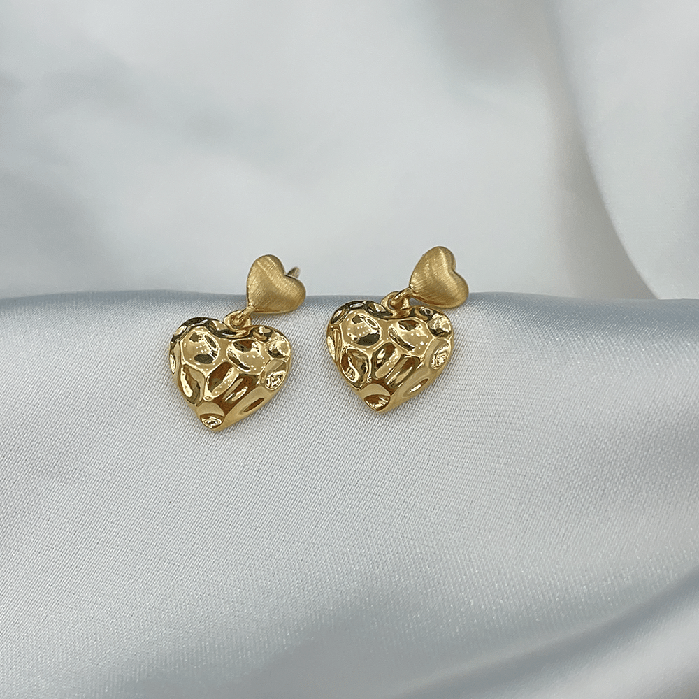 5G 锤纹爱心耳钉吊