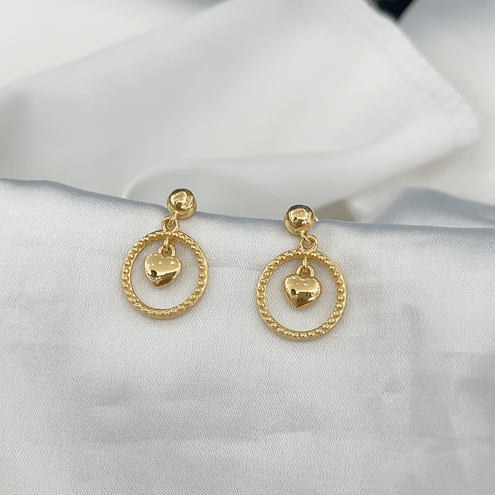 5G 珠边拉丝爱心耳钉
