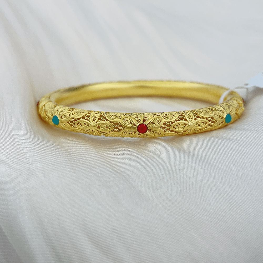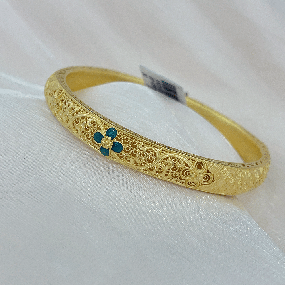 古法黄金珐琅倒模花丝手镯