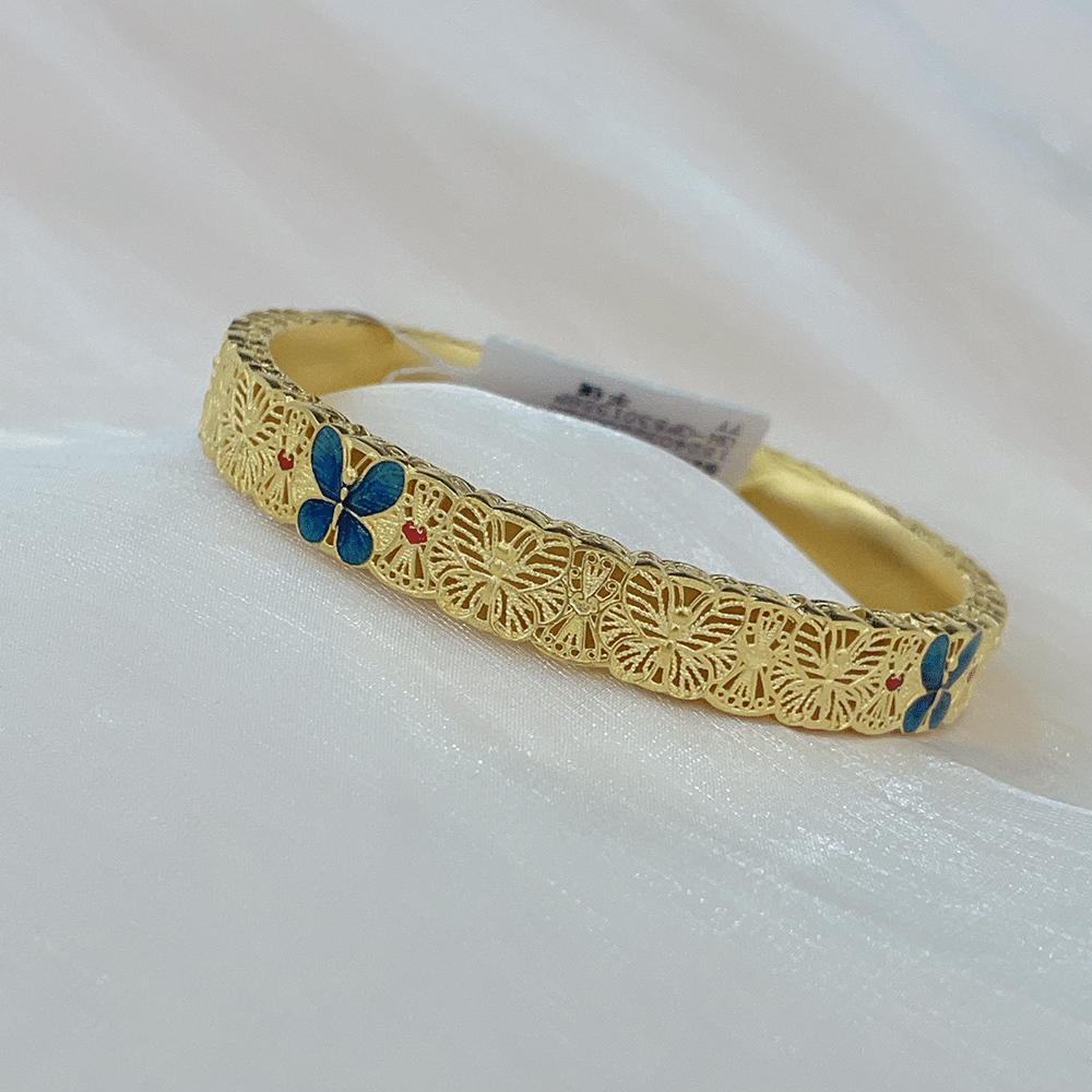 古法黄金珐琅花丝蝴蝶纹手镯