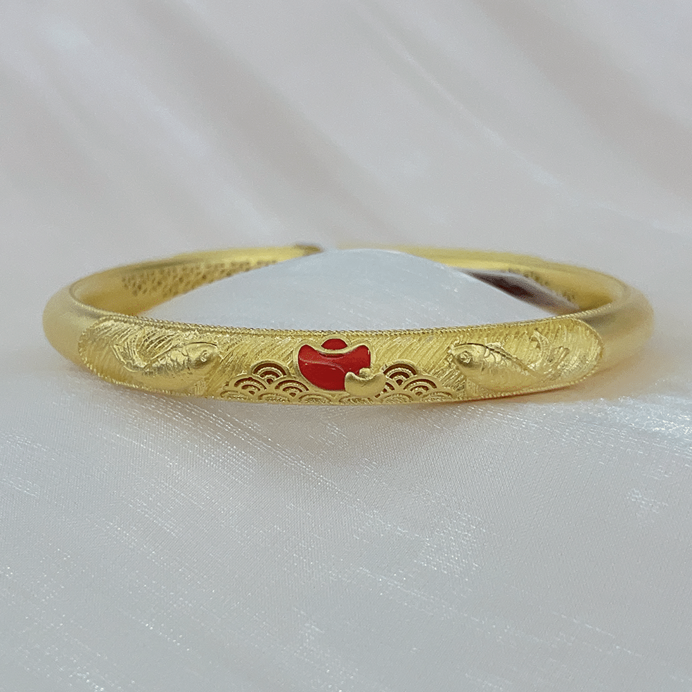 古法黄金珐琅花丝人鱼尾纹手镯