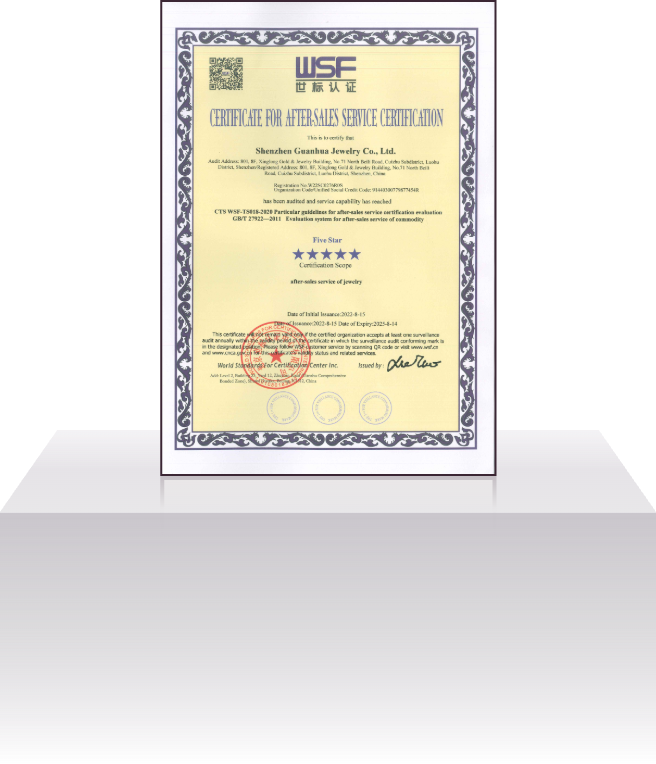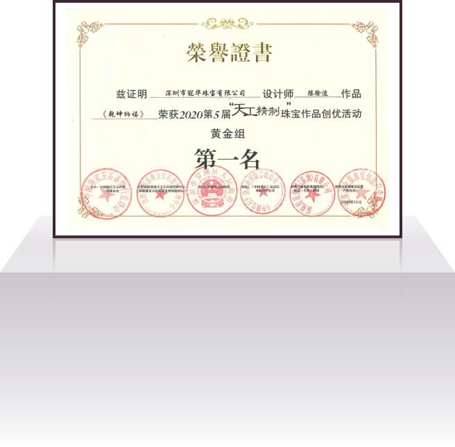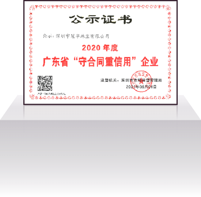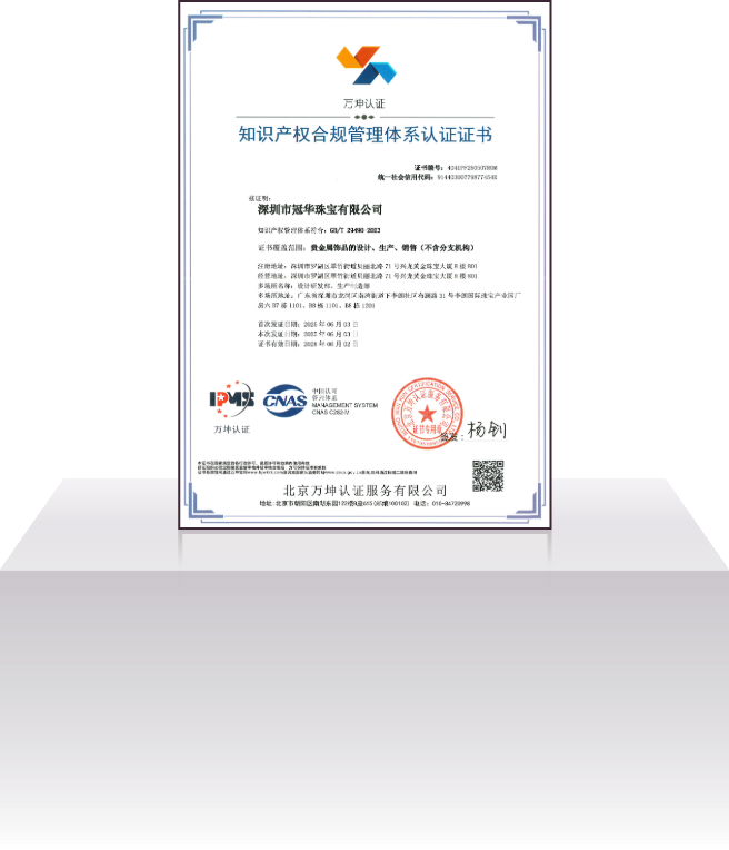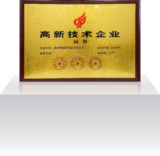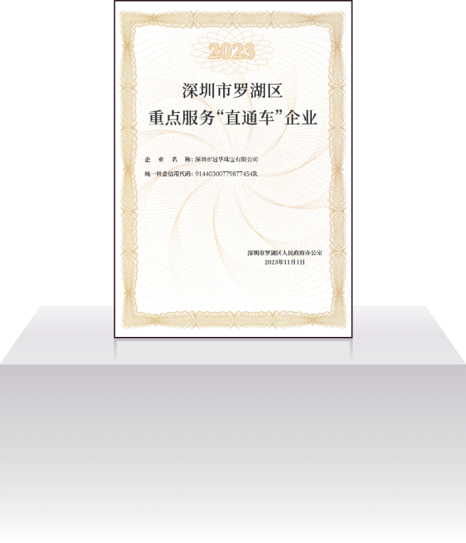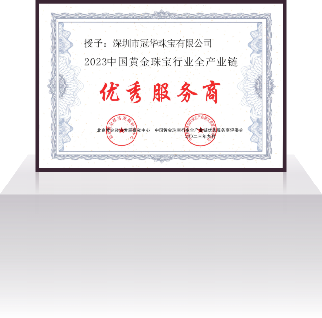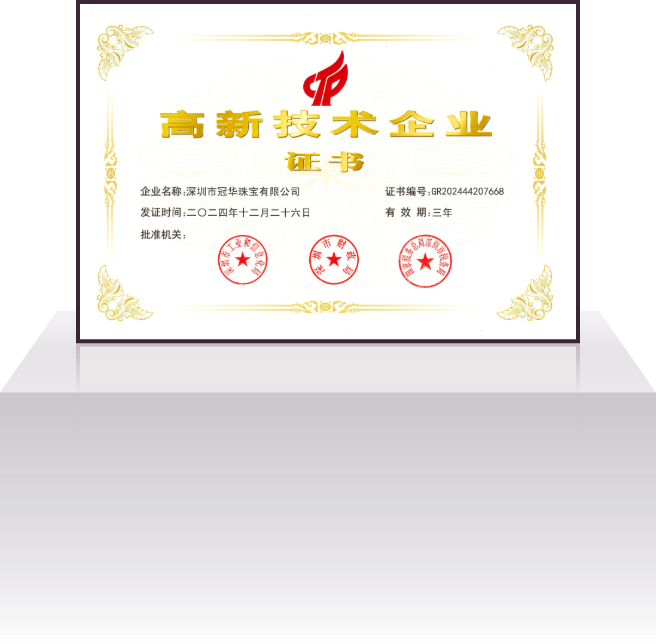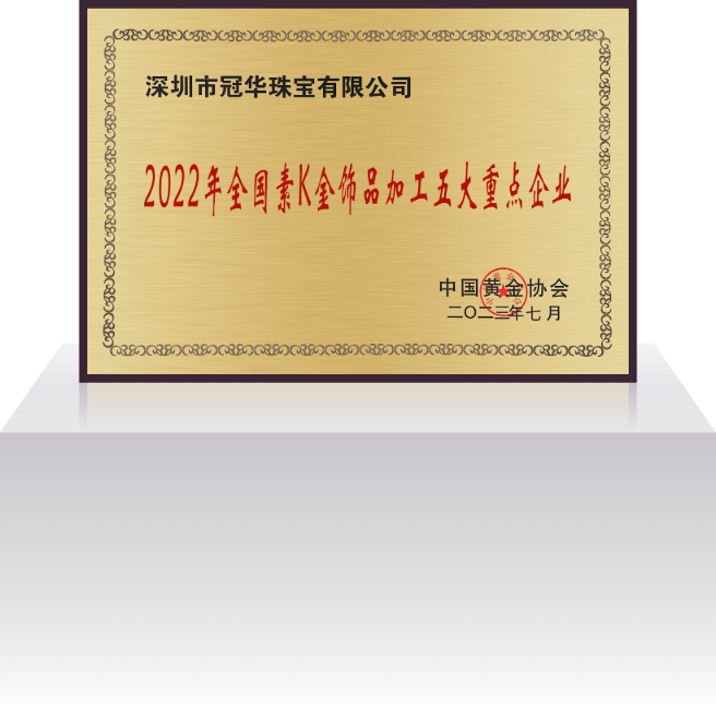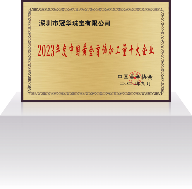 深圳市冠华珠宝有限公司成立于2004年4月,是一家集设计研发、生产加工、批发销售为一体的现代化珠宝企业。公司秉承“诚信为本、品质为根、务实求真、顾客为上”的经营宗旨;以“精工细作、优质服务”为营销策略,为广大客户提供优质的 K 金、铂金、足金、硬金、5G黄金、古法金、镶嵌等产品的专业生产供销服务,公司拥有1800㎡的一体化多功能豪华展厅和8000㎡的珠宝生产基地,员工人数达 1000 多人。